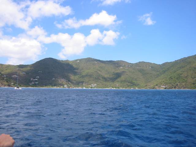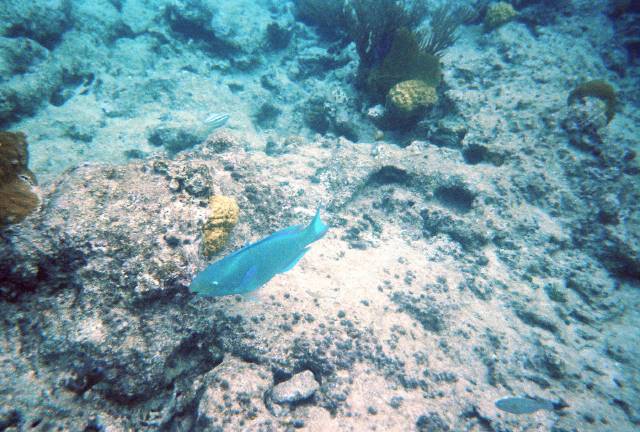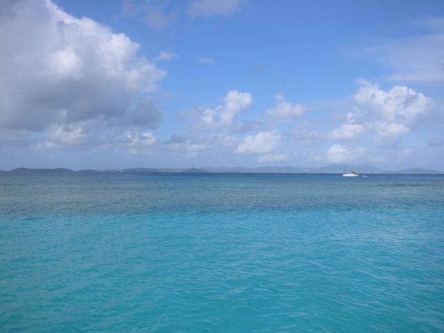 That's St. Thomas in the distance. St. John would be to the left, out of the frame. The darker band in the water is the reef. As we came into the harbour we saw a bunch of good sized sea turtles, about the size of garbage can lids. Unfortunately I never came across one again while snorkeling.