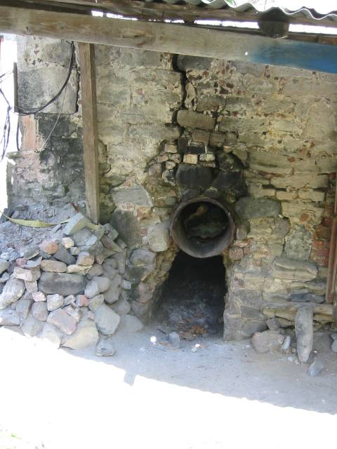 the fireplace under the boiling bowl.